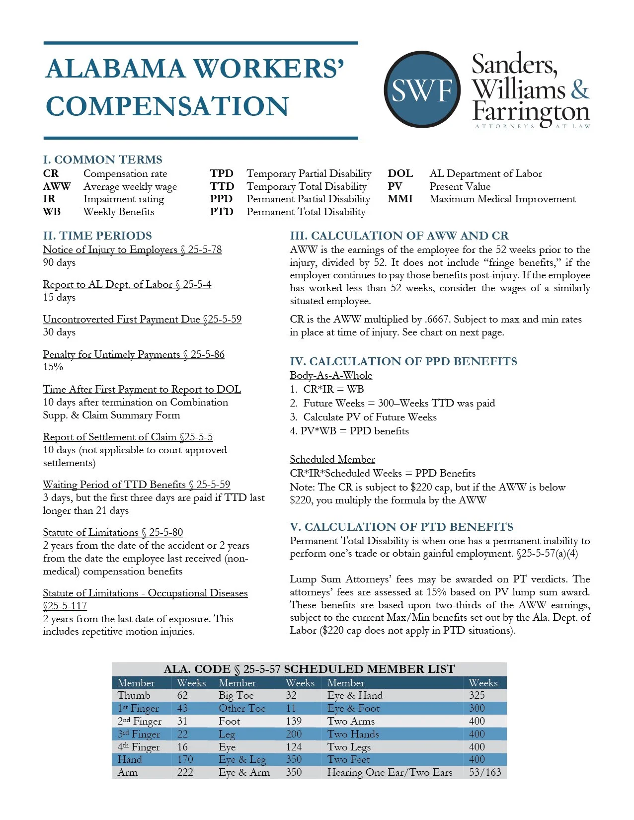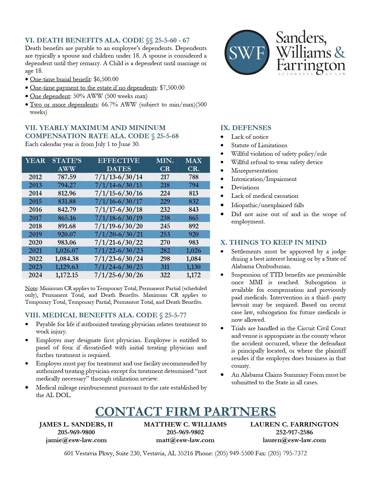 2025-26 Alabama Workers’ Compensation Cheat Sheet Jan 20 Written By Michelle Kounlavong Michelle Kounlavong